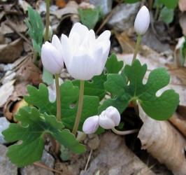 Een prachtige en nuttige Noord-Amerikaanse plant! De rode wortel levert rode kleurstof, die Indianen vroeger veel gebruikten. Als geneesmiddel is vooral de alkaloïde Sanguinarine bekend als middel tegen tandvleesontsteking of tegen hoest. De bloemen van dit familielid van de papavers hebben puntig bloemblad en zijn hagelwit van kleur met een geel hartje. De bescheiden hoogte (20 cm) en de voorkeur voor lichte schaduw en humusrijke grond maken deze voorjaarsbloeier tot een fijne tuinplant, die wel wat op een bosanemoon lijkt. Zeer winterhard!