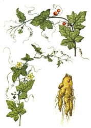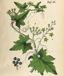 345540 HEGGERANK, WITTEook wel genoemd: WILDE HOP (Engels: White Bryony, Wild Hop, English Mandrake, Kudzu of the Northwest, Devil’s Turnip)(Bryonia alba) |