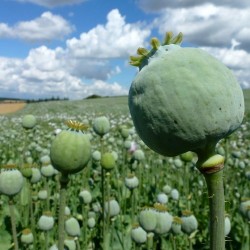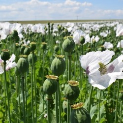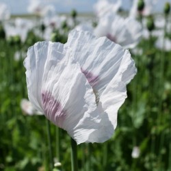 Dit is de grote oorspronkelijke maanzaad- of opiumpapaver. Nog sierlijk op de koop toe: grote bloemen in tinten wit met lila spots, later gevolgd door grote zaaddozen, waarin zich het blauwmaanzaad bevindt. Gemakkelijk te telen, oogst de zaadjes voor bakgerechten, de plant houdt uw kostbare grond bedekt, onderdrukt onkruid en doorwortelt de grond.