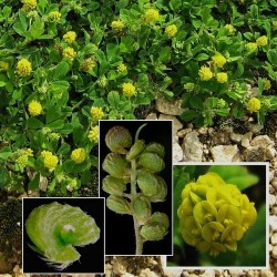 Deze meerjarige klaver bloeit bijna het hele jaar met gele bloemhoofdjes. Vlinderbloemige, is dus in staat stikstof uit de lucht te binden en op te slaan in de wortels. Bij afmaaien en doorwoelen komt deze beschikbaar voor andere planten. Hoogte 30 cm, houdt niet van zure grond, kan tegen lichte schaduw, dus een prima onder begroeiing. Het blad is na kort roerbakken eetbaar.