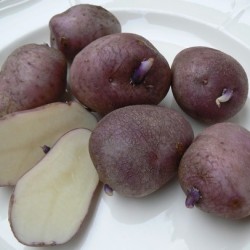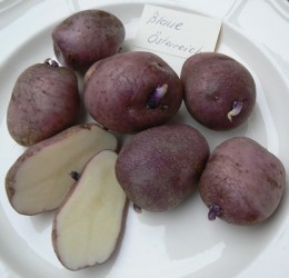 Prachtig, oud rasje met een (paars)blauw jasje. De vrij ronde aardappels lekker in de schil koken. Uit de pan komt de heerlijke, aardse geur je al tegemoet en de beloning is een prettige, lichte smaak vanuit een iets bloemige, maar voldoende stevige textuur. Ik vind het een heerlijke piepertje, die ook afgekoeld en gebakken echt snoepgoed is. Tijdens het koken, verdwijnt overigens de blauwe schilkleur als een toverbal! Er blijft een lichtbruine schil over.