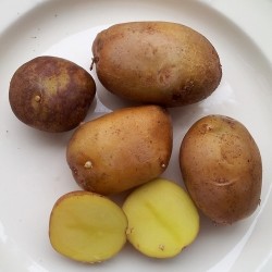 Deze mix van nakomelingen van de Blue Danube hebben een gele of paars-gele schil en bloemig knolvlees. Een mooie, resistente aardappel dat zich leent voor een “prakje met jus”, purée of als gebakken of gefrituurde aardappel. Goed te bewaren.