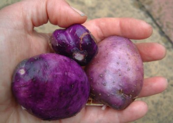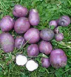 (voor 1915) Een zeldzaam rasje van onbekende afkomst, de bijzondere blauw-purperen schil valt vooral op. Overigens wordt de schil in kokend water meteen geel. Zeer bloemig rasje, die met zorg moet worden gekookt: net aan de kook houden om ze gelijkmatig gaar te krijgen. De smaak is ouderwets lekker, zowel gekookt als gepureerd. Maak er ook eens friet van: krokant en stevig! De planten zijn vatbaar voor de aardappelziekte, neem dus voldoende preventieve maatregelen.