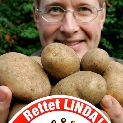 ECO GETEELDE AARDAPPELS. (1974) Ouders: Clivia x Hansa; kweker Fa Böhm, Europlant. “Konigin der deutschen Kartoffel”! De ovalen knollen hebben een gele schil en diepgeel knolvlees. De textuur en smaak zijn kort na de oogst naast de vaste structuur: wasachtig en zeer aromatisch. Na langere bewaring worden de knollen bloemiger, dus eigenlijk voor elk wat wils! Zowel koken als bakken leidt tot smakelijk resultaat. De kweker van deze heerlijke aardappel wilde zijn nieuwste introducties niet te veel concurrentie aandoen en trok ‘Linda’ terug uit het sortiment. Dit veroorzaakte een groot landelijk protest in Duitsland (onder aanvoering van Karsten Ellenberg), men beschouwde deze populaire aardappel als gemeenschappelijk bezit: “Rettet die Linda” was de slogan. Na een hoop geharrewar is deze pieper dus gered van de ondergang!