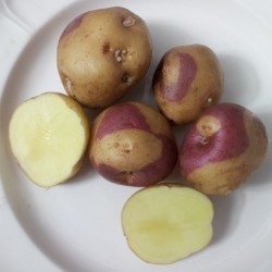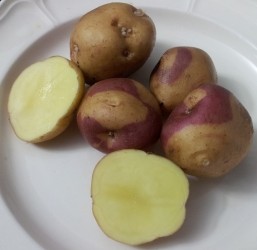 Prachtige aardappel met bolronde tot iets platronde knollen, geel met fraaie roze banen. Een sierraad in de oogstmand! Het crème knolvlees is vrij vast van structuur en prettig licht van smaak. Veelzijdig in gebruik: goed voor koken, frituren en bakken. Er komen veel knollen aan een plant, een vruchtbaar ras dus, dat uitstekend bewaarbaar is.