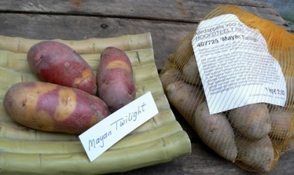 (2008) Het uiterlijk van deze rood-gele aardappel maakt al nieuwsgierig. De smaak spant de kroon: fijn van textuur, een uitgesproken vast aardappel, min of meer zoet met een tintje amandelsmaak. Het knolvlees is geel met soms een adertje rood erdoorheen. Eigenlijk is de naam ‘Mayan’ niet terecht: ‘Inca Twilight’ was beter geweest, de knollen groeien van oorsprong namelijk niet in het Mayan-gebied… De knollen lenen zich voor koken, bakken, (dunne) chips en frituren. Het is geen bewaaraardappel, dus meteen beginnen met smullen!