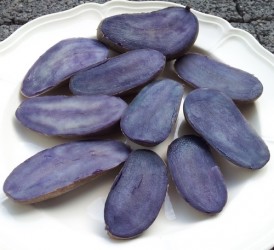 Over deze langovale, dieppaarse aardappel zal je weinig informatie kunnen vinden. Wij zijn blij dat we deze zeldzame pieper kunnen aanbieden! Het dieppaarse knolvlees (blauw na koken) heeft een fijnbloemige textuur en een frisse, lichte smaak. Veelzijdig toepasbaar met een prachtig diepe kleur.