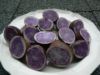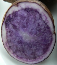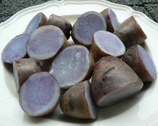 In het verleden en heden zijn talloze kruisingen gemaakt met zgn. “zwarte” aardappelen. Dit is er één uit een grijs verleden en biedt een vrij gladschillige, ovaalronde aardappel, donkerviolet aan de buitenzijde en gemarmerd blauwviolet knolvlees. Na de kook blijft een mooie lichtviolette aardappel over: de structuur is zeer fijn en bloemig, waardoor een verrassend zalvende textuur in de mond ontstaat. Ik heb de smaak als “eerlijk en iets zoet” omschreven. De bakkwaliteit is goed en afgekoeld is de knol ook lekker.