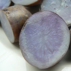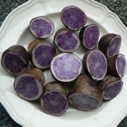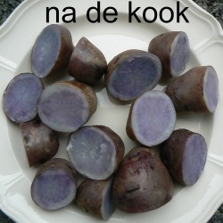 Zwarte aardappels vormen een onbekende groep in ons sortiment. De schil is dieppaars tot bijna zwart en het knolvlees is paars, gewolkt of wit. Om het verrassende effect van de kleur te behouden bevelen we aan om de knollen niet te schillen maar te wassen voor het koken. Planten vanaf half april, als de grond voldoende warmte heeft. Voorkiemen in het licht of in een grote pot mag eerder. Zet ze niet op een te natte plek, wel goed in de zon. De gemiddelde plantafstand is 70x40 cm, wij adviseren om 80x40 cm aan te houden om ziektes te voorkomen.