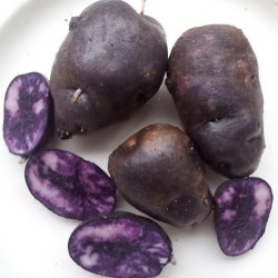 Zwarte aardappels vormen een onbekende groep in ons sortiment. De schil is dieppaars tot bijna zwart en het knolvlees is paars, gewolkt of wit. Om het verrassende effect van de kleur te behouden bevelen we aan om de knollen niet te schillen maar te wassen voor het koken. Planten vanaf half april, als de grond voldoende warmte heeft. Voorkiemen in het licht of in een grote pot mag eerder. Zet ze niet op een te natte plek, wel goed in de zon. De gemiddelde plantafstand is 70x40 cm, wij adviseren om 80x40 cm aan te houden om ziektes te voorkomen.