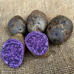 Zwarte aardappels vormen een onbekende groep in ons sortiment. De schil is dieppaars tot bijna zwart en het knolvlees is paars, gewolkt of wit. Om het verrassende effect van de kleur te behouden bevelen we aan om de knollen niet te schillen maar te wassen voor het koken. Planten vanaf half april, als de grond voldoende warmte heeft. Voorkiemen in het licht of in een grote pot mag eerder. Zet ze niet op een te natte plek, wel goed in de zon. De gemiddelde plantafstand is 70x40 cm, wij adviseren om 80x40 cm aan te houden om ziektes te voorkomen.