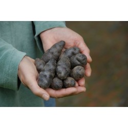 (1900) Voor velen is deze truffelaardappel de koningin onder de liefhebbersoorten! Wel eens zwarte aardappels gegeten? Nou ja, donkerviolet (schilkleur) is beter getypeerd, de binnenkant (knolvlees) is iets lichter violet. Langwerpig smal (als een korte winterpeen) met diepliggende ogen: lijkt wel op een truffel. Kook ze met schil en pel ze daarna: warm en afgekoeld een delicatesse! De planten zijn vatbaar voor de aardappelziekte, neem dus voldoende preventieve maatregelen, overigens is de knol minder vatbaar.