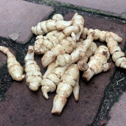 Bijzonder en exclusief zijn de pootknolletjes van deze verfijnde groente! Sinds 1882 in Engeland bekend, geroemd om zijn prettige, nootachtige smaak. Volwassen knolletjes zijn 5 cm lang en aan beide zijden smal toelopend met ongeveer 6 insnoeringen. In ons klimaat geheel winterhard.