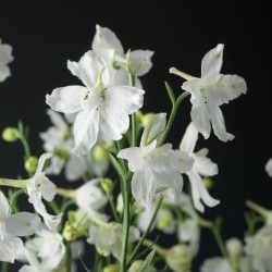 Deze soort neemt een speciaal plekje in bij de riddersporen. Mooi fijn blad met trosjes vrij grote bloemen. De plant blijft bij zachte winters over. Ze verdragen enige schaduw. De naam zegt het al: helder wit, zoals de vroegere ‘Snowcloud’. Een helder lichtje op menig iets donkerder plekje.