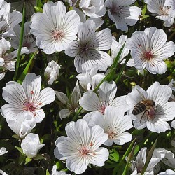 Een Californisch bloemetje, dat we vooral kennen als de geel-witte "Gebakken Eitjes", maar eigenlijk nog mooier is deze effen witte soort. Heel gemakkelijk in de teelt! Het plantje wordt 30 cm hoog en bloeit rijk met 1-1,5 cm grote schotelvormige, witte bloemetjes met donkere nerfjes. De naam “donzig” dankt het plantje aan de beharing rond de bloem(knoppen). Ze groeien op elke grondsoort, als het maar vochtig is. Na de bloei zijn de vruchtjes op beperkte schaal populair, de olie die ervan gemaakt wordt is zeer stabiel!