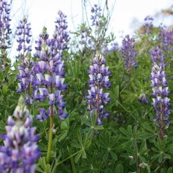 Deze Californische lupine valt meteen op door de kleine, 7-vingerige blaadjes, die grijsgroen van kleur en dikkig van structuur zijn. In voedzame grond bloeit de plant de hele zomer met lange bloemtrossen in hoofdzakelijk blauwe kleur. Binnen elk blauwe vlinderbloemetje zitten vaak ook de kleuren wit, lila en roze. In voedsame, vochtige grond kunnen ze 1 m hoog worden. Na de bloei vormen zich harige, sierlijke peultjes.