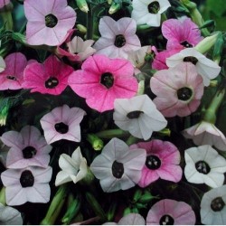 Tabaksplanten zijn ijverige bloeiers, bij zon of schaduw, droog weer of regen! Nog maar net ontdekt in Brazilië, in inmiddels overal al een hype! Meerkleurig en toch maar één kleur.... De lichtwijnrode bloemen verkleuren via roze naar wit, naarmate ze langer bloeien! In de meeste gevallen heeft elk bloemetje een pittig zwart hartje. De heerlijke geur is een extra toegift. De gehele plant is 80-120 cm hoog en vormt eerst een stevige basis van grote bladeren. Geef ze een zonnige tot half beschaduwde plaats, deze gemakkelijke plant groeit haast overal!