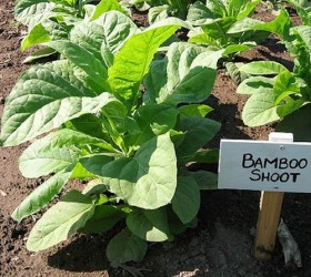 Tabaksplanten zijn ijverige bloeiers, bij zon of schaduw, droog weer of regen! Een variëteit met heldergroene bladeren die tot wel 2-2,5 m hoog wordt! Het is een zuilvormige plant (weinig zijstengels) met lichtgroene bladeren, crèmekleurige stengels en je oogst enorm veel bladeren! Rijpt in 80-90 dagen. De bladeren drogen lichtgeel of goudbruin. Bamboo Shoot is mild om te roken maar heeft een vrij hoog nicotinegehalte. Het zaad werd oorspronkelijk verzameld in China en in 1988 aan de USDA (ministerie van Landbouw in de VS) geschonken.