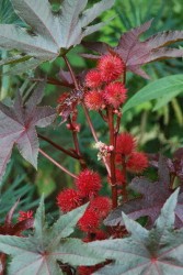 Zeer snel groeiende plant met vingervormige, grote bladeren. Zal dit de plant zijn, die de profeet Jona schaduw bood? Vult een beschutte plaats geheel op! Bloeit met dikke bloei-aren van mannelijke en vrouwelijke bloemen; de laatste groeien uit tot ronde, stekelige bolletjes met de prachtige zaden. Deze zaden zijn giftig, maar ja, wie eet daar nu van... Planten binnen overwinteren. De donkerstbladige: jong en oud blad zijn intens donkerbruin (mits zonnig!) en bloem en vrucht zijn helderrood: een beauty!