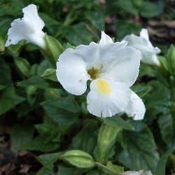Dit sterke kamer- en buitenplantje bloeit de hele zomer op een halfzonnig plekje in vochtige grond. De malse blaadjes zijn de basis voor beeldschone trompetvormige bloemetjes met een lang wit halsje en een stevig groen basiskelkje. De bloemetjes hebben fluweelzachte kleurtjes.