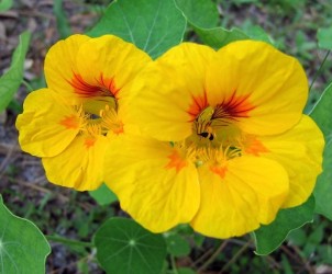 Een echte langbloeier! De halfdubbele bloemen zijn goudgeel, het verwarmt de ogen… (foto laat een enkelbloemige zien). De bloemen steken prachtig af tegen het frisgroene blad. De niet rankende, compacte planten (hoogte 30 cm) geven de gespoorde bloemen boven het blad.