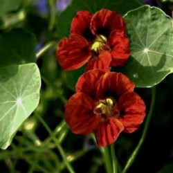 De "Gleam"-serie geeft dubbele en semi-dubbele bloemen met spoortjes. De groeikrachtige planten zijn semi-rankend, d.w.z. de ranken hebben een lengte van ongeveer 1,5 m… ook ideaal voor bloembakken en hanging baskets. Zeer donkerrode bloemen met zwarte vlekken steken prachtig af tegen het heldergroene blad.
