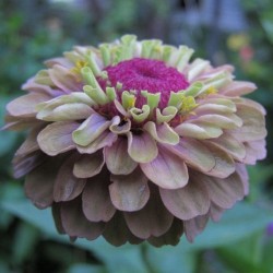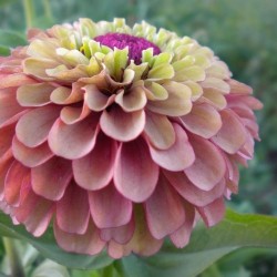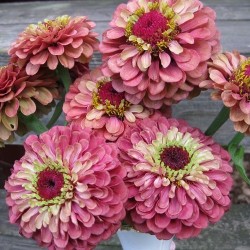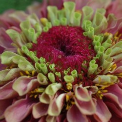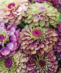 Hoe je oudroze, wijnrood, violet, limegroen en citroengeel creatief met elkaar verenigt bewijst deze unieke zinnia! Vanuit het centrum ontstaan de lintbloemen als een opgerold kokertje om zich al groeien te ontvouwen tot ovaalrond bloemblad. In de nabloei vervagen de kleuren tot rustige tinten, in elk stadium de moeite waard! Deze Queenserie vertegenwoordigt de mooiste Zinnia’s ooit!