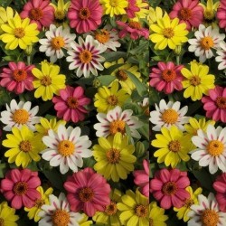 Sterke en heldere zinnia in een rijkbloeiende en compacte uitvoering. Ze zijn ziekteresistent en kunnen goed tegen droogte en nattigheid. Het heldere mengsel bestaat uit de kleuren geel, rozerood e wit met roze centrum-ster! Een blikvanger, die uiteraard heel mooi in potten en bakken kan pronken! Zinnia marylandica is ontstaan uit kruisingen tussen Zinnia angustifolia en Zinnia violacea, uitgevoerd aan de Universiteit van Maryland rond 1980. Sindsdien komt uit dit soort een sterk nageslacht!