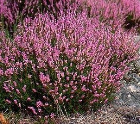 U ziet het goed: heide is goed te telen uit een pakje zaad! Roze tinten gemengd, meestal niet hoger dan 30 cm. Van de jonge topjes wordt een gele kleurstof gemaakt.