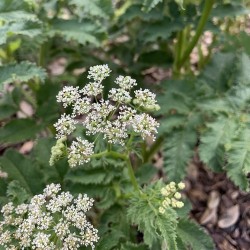 De witte, geurende schermbloemen (80 cm hoog) zijn de vrolijke bekroning van deze plant, maar het meest opvallend is toch wel het groene, geveerde blad met aan de uiteinden weer extra fraaie tanding. Dit blad bouwt zich op in lagen op elkaar. Deze plant is zeldzaam en komt alleen in het wild in de Azoren voor.