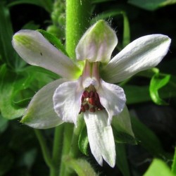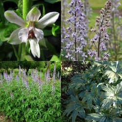 Dit is wel een zeer ongewone en indrukwekkend hoge plant! De harige stengels zijn dichtbevolkt met aparte bloemetjes: orchidee-achtig, purper met blauw-paars van kleur. De flinke bladbasis bestaat uit fraaie, hand- of stervormige, glanzend groene bladeren, elk met een fraaie nerftekening. Dit tweejarige soort groeit gemakkelijk in een rijk, goed gedraineerde bodem, op een zonnige plek. Ze zaaien zich gemakkelijk uit en zorgen zodoende weer voor nageslacht.