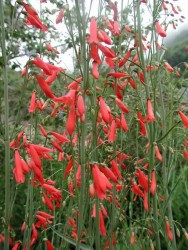 Alles is slank aan deze soort: dunne, pijpvormige, helderrode bloemetjes, aan slanke lange stengels (hoogte 125 cm). Zelfs het blad doet mee: fris lancetvormig blad. Een sterke snijbloem.