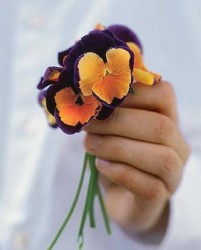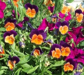 Gouden Medaille-winnaar 1990! Prachtige tweekleurige, grootbloemige viool: violet met oranje hart. De oude hippiekleuren herleven!