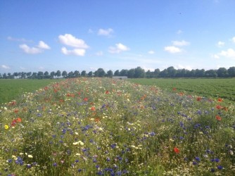 Duurzaamheid is steeds belangrijker binnen de landbouw. In samenwerking met diverse gebruikersgroepen produceren wij daarom mengsels die voor agrariërs een beter evenwicht tussen productie, natuur en omgeving realiseren. Deze mengsels worden gebruikt voor akkerranden, FAB- randen en de vergroening GLB. FAB staat voor Functionele Agro Biodiversiteit en is een belangrijk onderdeel binnen de landbouwduurzaamheid. Het doel van FAB-randen is om de biodiversiteit rond akkers te stimuleren wat een gunstig effect heeft op het hoofdgewas. Er zijn verschillende soorten FAB- randen met elk een andere functie. Voorbeelden van functies zijn: natuurlijke plaagbestrijding en het verbeteren van de waterkwaliteit. Hierdoor kan op een natuurlijke manier de productie verhoogd worden. Samenstelling in gewichtspercentages: 6% Alexandrijnse Klaver 18% Boekweit 6% Bolderik 3% Margriet 2% Cosmea 2% Gele Ganzebloem 3% Gierst 7% Gipskruid 3% Hoofdjesgillia 2% Klaproos 3% Kleine Zonnebloem 8% Korenbloem 8% Luzerne 2% Meisjesogen 3% Phacelia 4% Saffloer 6% Vlas 14% Zomertarwe Dosering: 1 kg voor 400-600 m² ZaaimethodeZaaien: maart-juni. Eerst de grond kaal maken en goed fijn harken, vervolgens de zaden (evt. vermengd met droog zand) gelijkmatig uitstrooien en licht inharken. Tenslotte aandrukken met plank, hand of wals. Leveringsmaandenhet gehele jaar