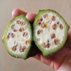 Vanwege de grote hoeveelheid zaden in de vruchten worden deze alleen gebruikt om mee te koken of bakken. Het blad wordt in de tropen gebruikt als bord of om eten in te rollen, ondergrondse stengels worden ook gegeten als groente... De planten kunnen in de zomer naar buiten en vanaf oktober-april in de huiskamer op een zeer lichte plaats. Je kan de plant ook een flink winterdek geven buiten, het blad sterft dan af en (als de winter niet te streng is) de plant loopt weer vanuit de wortel uit. ZaaimethodeZaaien: De zaden zijn hard en droog. Vijl of slijp ze langs de naad en laat ze vervolgens 2 dagen in warm water weken. Hierna de zaden 3 weken in een gesloten plastic zak in de koelkast. Vervolgens de zaden weer in warm water op kamertemperatuur, elke dag het water verversen. Als na 2 weken geen kieming zichtbaar is, de zaden op een warm plekje in luchtige grond laten kiemen. Kiemduur varieert normaal van 1-12 maanden. Zolang de zaden hard zijn, kan kieming volgen… Leveringsmaandenhet gehele jaar