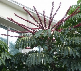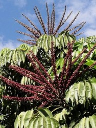 Deze sterke, handvormige bladplant wordt breed en kan tegen droge lucht: een sterke kamerplant dus. De oudere planten krijgen een fantastische bloeiwijze, lange aren, gerangschikt als een waaier, met honderden rode bloemetjes. 's Zomers mag de plant naar buiten.