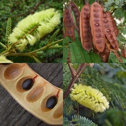 Je zou het aan het exotische uiterlijk niet zeggen, maar deze plant is redelijk winterhard bij ons en groeit uit tot een kleine boom. In een pot of in de vollegrond, het zeer fijne, grote, dubbelgeveerde blad en de citroengele tot crèmekleurige poederkwast-achtige bloemen zullen je verbazen! Na de bloei ontstaan van groen naar bruin kleurende peulen, waarin de zaden al snel zichtbaar zijn.