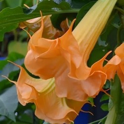 Een onmiddellijk opvallende kuipplant door zijn 30 cm lange, hangende trompetvormige, lichtoranje bloemen, die heerlijk geuren. Veel water en veel mest zorgen voor een enorm snelle groei en uitbundige bloei. Alle plantendelen zijn giftig, dus pas op voor kleine kinderen!