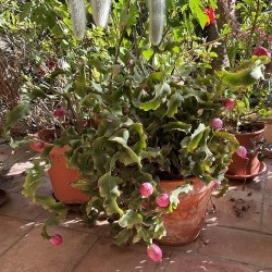 Een bladcactus zonder stekels, met breed en dik, decoratief krullend blad. Een plant om in de zomer buiten te laten groeien en dat ‘s winters in een koele kamer binnen wordt gezet. De sierlijke, witte bloemen verschijnen in de nacht, de moeite waard om voor wakker te blijven... Na de bloei ontstaan ronde, rode vruchten, die eetbaar en zeer sappig en smakelijk zijn.