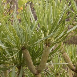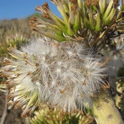 Het bijzondere van deze fraaie vetplant, is dat deze in het wild alleen op de Canarische Eilanden voorkomt. In de rest van de wereld is de plant “geïmporteerd”. De smalle, langwerpige, sappige blaadjes groeien in een grote toef aan het van de vertakkende stengels. Af en toe laat de plant zijn blad vallen, zo ontstaat een stammetje, geen paniek, de stengels bevatten ook bladgroen, de plant leeft gewoon door en geeft op zijn tijd weer blad. Kleinia houdt van een zeer lichte plaats, matig water en mag in de zomer buiten.