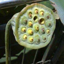 Boeiende geheimzinnige plant, door z'n vernuftige aanpassing aan het moeras-milieu. De bladeren zijn groot en rond, de bladsteel zit in het midden. De wonderschone WITTE bloemen doen in eerste aanblik denken aan onze waterlelie, maar in het midden staat de typerende, afgeplatte bloembodem, waar in holletjes de zaden ontstaan.