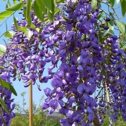 Deze beschermde Zuid-Afrikaanse boom verdient veel meer aandacht! De boom bloeit prachtig met hangende trossen blauwe vlinderbloemen en lijkt zodoende wel op onze bekende Blauwe Regen, maar dan niet als slingerplant maar met een zelfstandige stam. De boom verdraagt enige vorst, maar de jonge jaren moeten beter beschermd worden doorgemaakt.