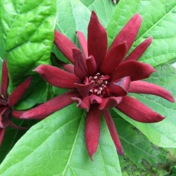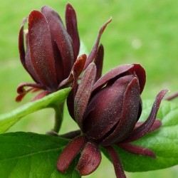 Soms snap je niet waarom een plant niet veel bekender is! Neem nu deze wonderlijke, winterharde struik: het blad is glanzend groen, zoals de laurierkers en vanaf juni tot in de herfst is er de exotische bloei: bruinrood in de vorm van een magnolia of protea… De geur van de bloemen is fantastisch: zoet als kaneel of meloenen, een geur, die ook vrijkomt bij het snijden van jonge twijgen. De oudere takken kunnen worden geschild voor een zeer goede vervanger van kaneel. De struik groeit langzaam en bloeit het rijkst op een zonnige plaats. De uiteindelijke hoogte is ruim 2 m, maar snoeien is mogelijk. Geef ze rijke, vochthoudende grond: een aanwinst! Sinds 1726 is deze uit Noord-Amerika afkomstige, bijzondere struik al in cultuur in Europa.