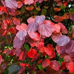 Een zeer fraaie heester met de mooiste herfstkleur van allen! Als je maar 1 plant in de tuin mag zetten voor de herfstkleuren, dan is dit een erg goede keuze... De hoogte na 10 jaar is 2,5 m. De stervormige, mild geurende bloemetjes zijn donkerrood en verschijnen als de hartvormige bladeren al in de mooiste herfsttinten verkleuren: in september en oktober!