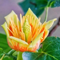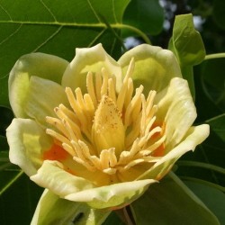Dit soort is afkomstig uit Noord-Amerika en is aldaar (naast sierlijk) ook een belangrijke houtleverancier (“Amerikaanse Populier”, dus zachthout). De bloem is uiteraard het hoogtepunt van deze boom: tulpvormig, lichtgeel met een pittig oranje basis, insecten zijn er dol op. De vlammend oranjegele herfstkleur van de bladeren maken de tulpenboom tot een sieraad in het landschap. Dat blad is daarvoor gewoon groen, maar wel met een grappig vorm, vierpuntig. De boom is zeer vorstbestendig. ZaaimethodeZaaien: jaarrond. Zaden eventueel ontdoen van het vleugeltje. Eerst 24 uur weken in warm water, afgieten en zaaien in een bak buiten of in een gemarkeerd plekje in de vollegrond. De kieming verloopt traag en er kunnen zelfs na 1-2 jaar nog nakomers kiemen. Hoogte20m Leveringsmaandenhet gehele jaar