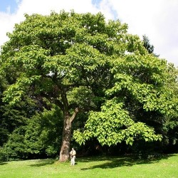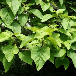Een bijzondere, Chinese boom, die behoorlijk winterhard is in ons land, zeker naarmate de boom ouder wordt. De teelt in een grote pot of metselkuip is voor kleinere tuinen een goede optie. Groot, hartvormig blad, aan de onderzijde behaard. De bloemtros is de beloning na een zachte winter: een opstaande tros met naar benedengerichte trompetbloemen, lichtviolet met gele strepen in de keel.