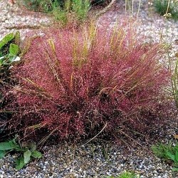Compacte, vrij breedbladige grassoort (50cm) met vanaf augustus een overdadige, zeer fijne bloei, die zich weldra purperrood kleurt. Overwintering niet te nat.
