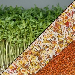 ZaaimethodeKweekmethode als kiemgroente: Spoel de zaden met lauw water af, en zet ze een uurtje in de “week”. Het water afgieten, en de zaden 2x per dag even met lauw water spoelen. Kweek ze bijvoorbeeld in een glazen pot of speciaal kiemsetje (690010 of 690020). Tussen de spoelbeurten in de pot donker en warm wegzetten. Kweekmethode als microgroente: De zaden kunnen ook op een micromatje (690030) of in een dun laagje gezeefde grond worden gekweekt. Oogsten als het blad 10 cm is. Leveringsmaandenhet gehele jaar Gelijke productenDit product kent meer toepassingen en komt daarom in verschillende groepen van onze website voor. Dit product is ook te vinden als