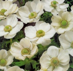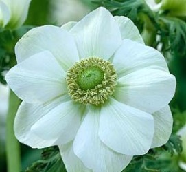 Verreweg de bekendste anemoon, geliefd door alle tijden heen als snijbloem en al vanaf ca. 1850 vanuit Frankrijk in ons land geïntroduceerd. Er zijn twee bekende typen: het De Caentype met grote, fraai gekleurde, enkelvoudige bloemen en het St. Brigidtype met halfgevulde bloemen en vrij smalle bloemblaadjes. Verlangen voedzame humeuze grond en met enig winterdek voldoende vorstbestendig. Hoogte 25 cm. Helderwit, enkelbloemig met helder, geelgroen hart.