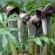 Dit fraaie Japanse soort maakt grote bekers (vlak boven de grond) en ongeveer tegelijk ontvouwt zich het (niet minder fraaie) blad. De bekers hebben aan de binnenzijde een diep bruinrood dakje, het uitgroeisel van de bloemschede. De bruinrode bloeikolf groeit uit met een decimeters lange sliert, wellicht om insecten extra te lokken. De buitenkant van de bloemschede is gestreept wit met bruinrood... Zet de knollen op een schaduwplek in zeer humeuze grond, extra winterdek geeft een goede kans op overwintering, anders even oppotten en vorstvrij houden.